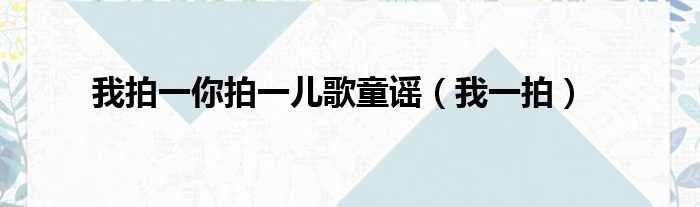 我拍一你拍一儿歌童谣(我一拍)
