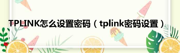 TPLINK怎么设置密码(tplink密码设置)