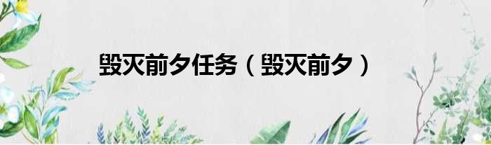 大家好,小爱来为大家解答以上问题。毁灭前夕任务,毁灭前夕很多人还不知道,现在让我们一起来看看吧!