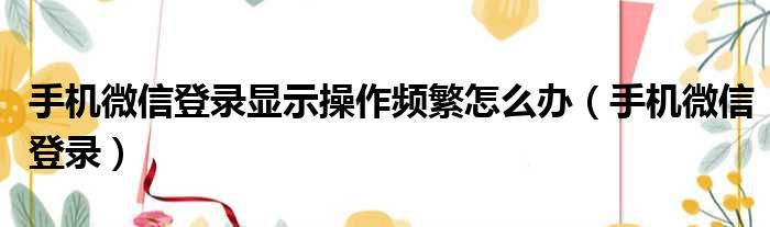 手机微信登录显示操作频繁怎么办(手机微信登录)