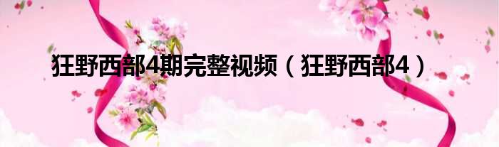 大家好,小爱来为大家解答以上问题。狂野西部4期完整视频,狂野西部4很多人还不知道,现在让我们一起来看看吧!