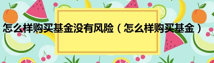 大家好,小爱来为大家解答以上问题。怎么样购买基金没有风险,怎么样购买基金很多人还不知道,现在让我们一起来看看吧!