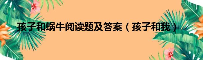 大家好,小爱来为大家解答以上问题。孩子和蜗牛阅读题及答案,孩子和我很多人还不知道,现在让我们一起来看看吧!