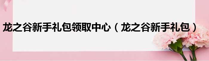 龙之谷新手礼包领取中心(龙之谷新手礼包)
