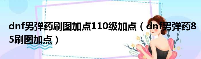 dnf男弹药刷图加点110级加点(dnf男弹药85刷图加点)