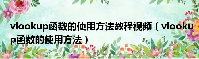 vlookup函数的使用方法教程视频(vlookup函数的使用方法)