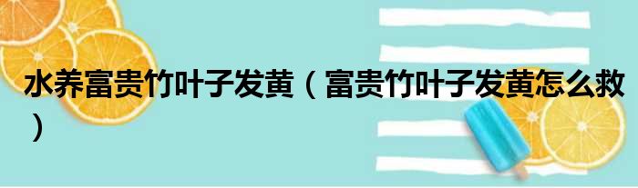 导读 大家好,小爱来为大家解答以上问题。水养富贵竹叶子发黄,富贵竹叶子发黄怎么救很多人还不知道,现在让我们一起来看看吧!1、500克水可以溶