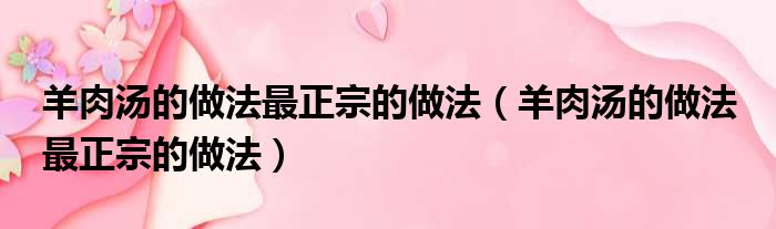 羊肉汤的做法最正宗的做法(羊肉汤的做法 最正宗的做法)