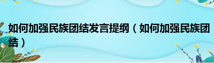 大家好,小爱来为大家解答以上问题。如何加强民族团结发言提纲,如何加强民族团结很多人还不知道,现在让我们一起来看看吧!
