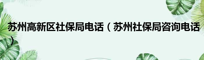 苏州高新区社保局电话(苏州社保局咨询电话)