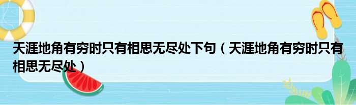 天涯地角有穷时只有相思无尽处下句(天涯地角有穷时只有相思无尽处)