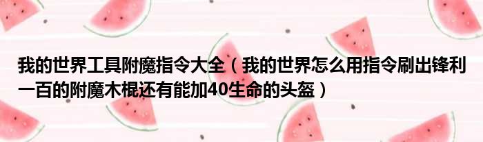 我的世界工具附魔指令大全(我的世界怎么用指令刷出锋利一百的附魔木棍还有能加40生命的头盔)