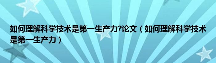 如何理解科学技术是第一生产力?论文(如何理解科学技术是第一生产力)