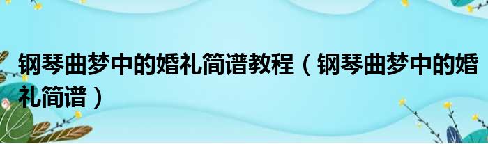 钢琴曲梦中的婚礼简谱教程(钢琴曲梦中的婚礼简谱)
