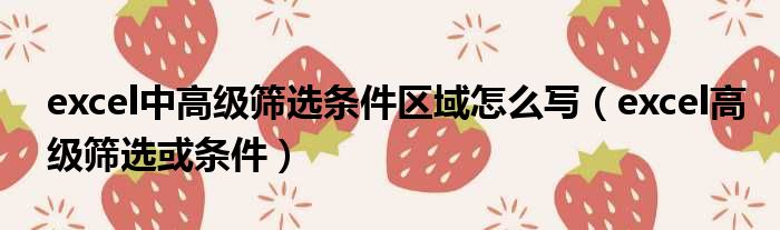 excel中高级筛选条件区域怎么写(excel高级筛选或条件)