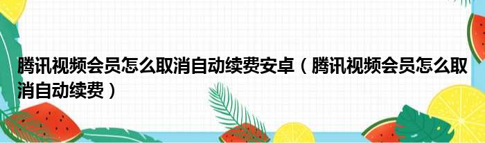 腾讯视频会员怎么取消自动续费安卓(腾讯视频会员怎么取消自动续费)