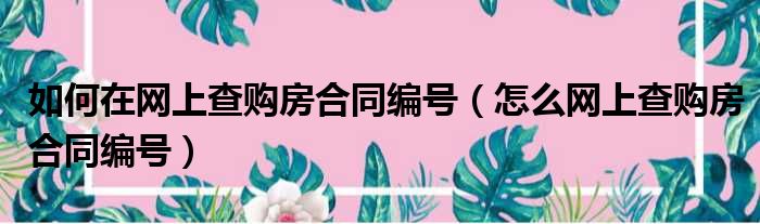 如何在网上查购房合同编号(怎么网上查购房合同编号)
