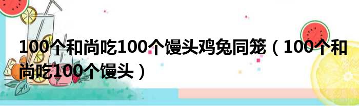 100个和尚吃100个馒头鸡兔同笼(100个和尚吃100个馒头)