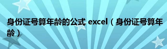 身份证号算年龄的公式 excel(身份证号算年龄)