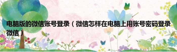 电脑版的微信账号登录(微信怎样在电脑上用账号密码登录微信)