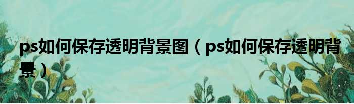导读 大家好,小东方来为大家解答以上的问题。ps如何保存透明背景图,ps如何保存透明背景这个很多人还不知道,现在让我们一起来看看吧!1、PS里把