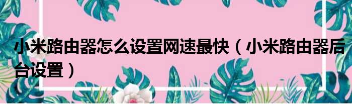 小米路由器怎么设置网速最快(小米路由器后台设置)