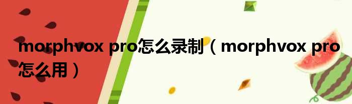morphvox pro怎么录制(morphvox pro怎么用)