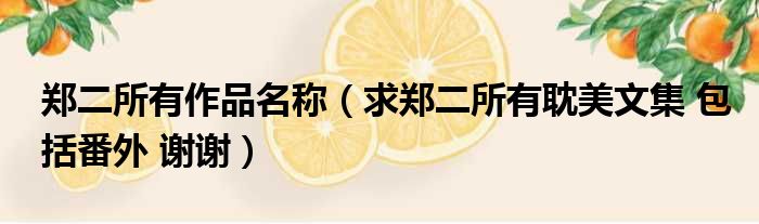 郑二所有作品名称(求郑二所有耽美文集 包括番外 谢谢)