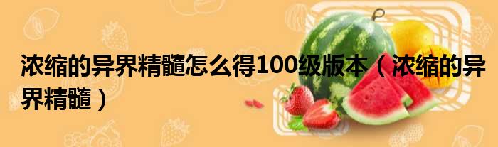 浓缩的异界精髓怎么得100级版本(浓缩的异界精髓)