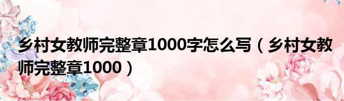 乡村女教师完整章1000字怎么写(乡村女教师完整章1000)