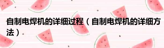 自制电焊机的详细过程(自制电焊机的详细方法)