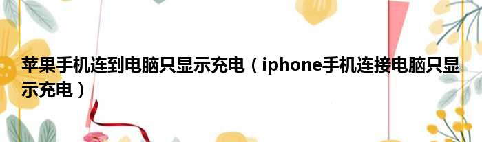 苹果手机连到电脑只显示充电(iphone手机连接电脑只显示充电)