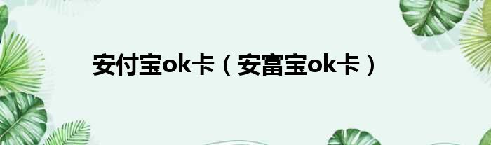 大家好,小东方来为大家解答以上的问题。安付宝ok卡,安富宝ok卡这个很多人还不知道,现在让我们一起来看看吧!