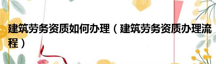 建筑劳务资质如何办理(建筑劳务资质办理流程)