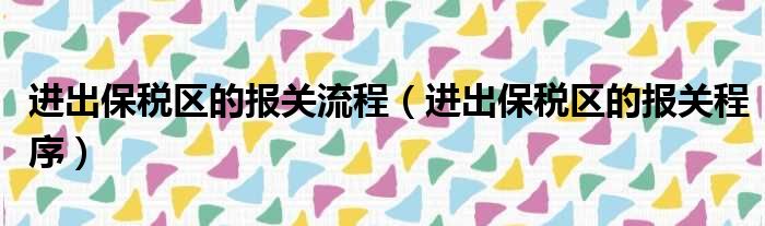 进出保税区的报关流程(进出保税区的报关程序)
