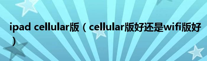 ipad cellular版(cellular版好还是wifi版好)