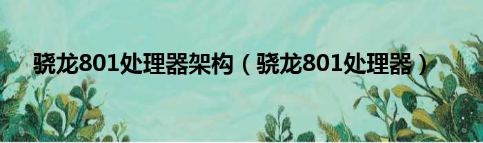 骁龙801处理器架构(骁龙801处理器)