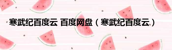 寒武纪百度云 百度网盘(寒武纪百度云)