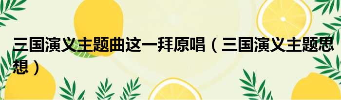 三国演义主题曲这一拜原唱(三国演义主题思想)