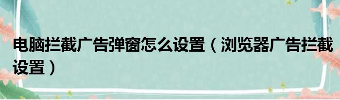 电脑拦截广告弹窗怎么设置(浏览器广告拦截设置)