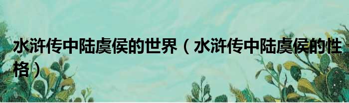 导读 大家好,小东方来为大家解答以上的问题。水浒传中陆虞侯的世界,水浒传中陆虞侯的性格这个很多人还不知道,现在让我们一起来看看吧!1、性格