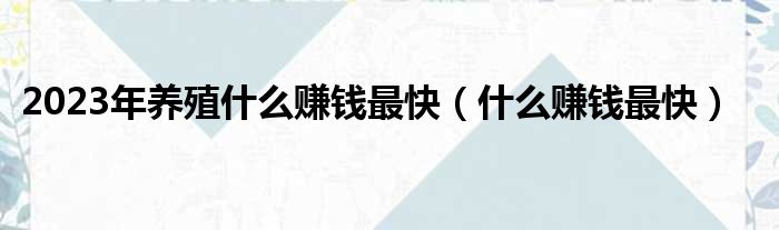 2023年养殖什么赚钱最快(什么赚钱最快)