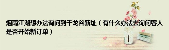 烟雨江湖想办法询问到千龙谷新址(有什么办法去询问客人是否开始新订单)