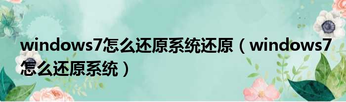 windows7怎么还原系统还原(windows7怎么还原系统)