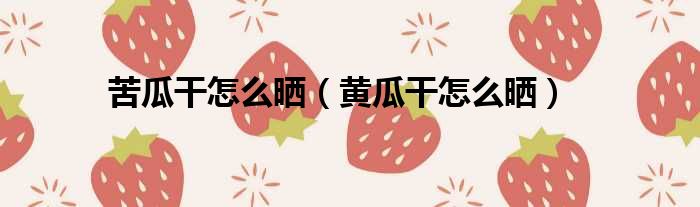 苦瓜干怎么晒(黄瓜干怎么晒)