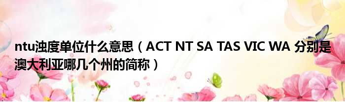 ntu浊度单位什么意思(ACT NT SA TAS VIC WA 分别是澳大利亚哪几个州的简称)
