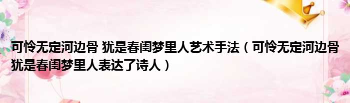 可怜无定河边骨 犹是春闺梦里人艺术手法(可怜无定河边骨犹是春闺梦里人表达了诗人)