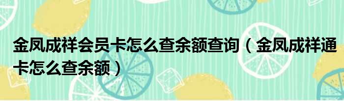 金凤成祥会员卡怎么查余额查询(金凤成祥通卡怎么查余额)
