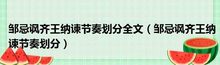 邹忌讽齐王纳谏节奏划分全文(邹忌讽齐王纳谏节奏划分)
