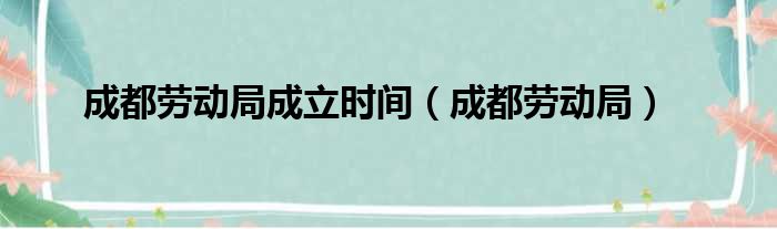 大家好,小东方来为大家解答以上的问题。成都劳动局成立时间,成都劳动局这个很多人还不知道,现在让我们一起来看看吧!